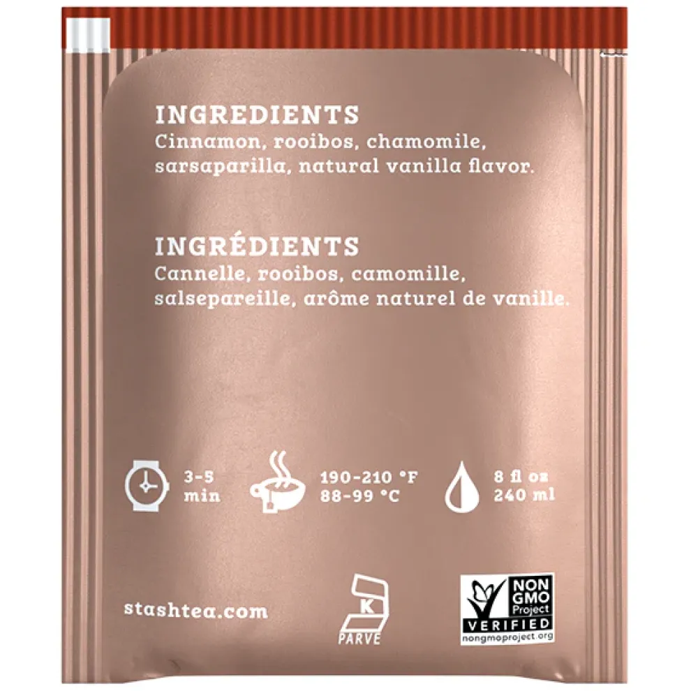 Cinnamon, Rooibos, Chamomile, Sarsaparilla, Natural Vanilla Flavor